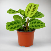 Also known as Maranta Leuconeura Variegata, the Beauty Kim’s matte leaves display unique, cream-to-lime blotches on a soft green canvas, each pattern is unpredictable and delightfully distinct! The velvety texture invites a gentle touch while its low, spreading habit complements a variety of décor styles, from chic contemporary to relaxed tropical retreats.