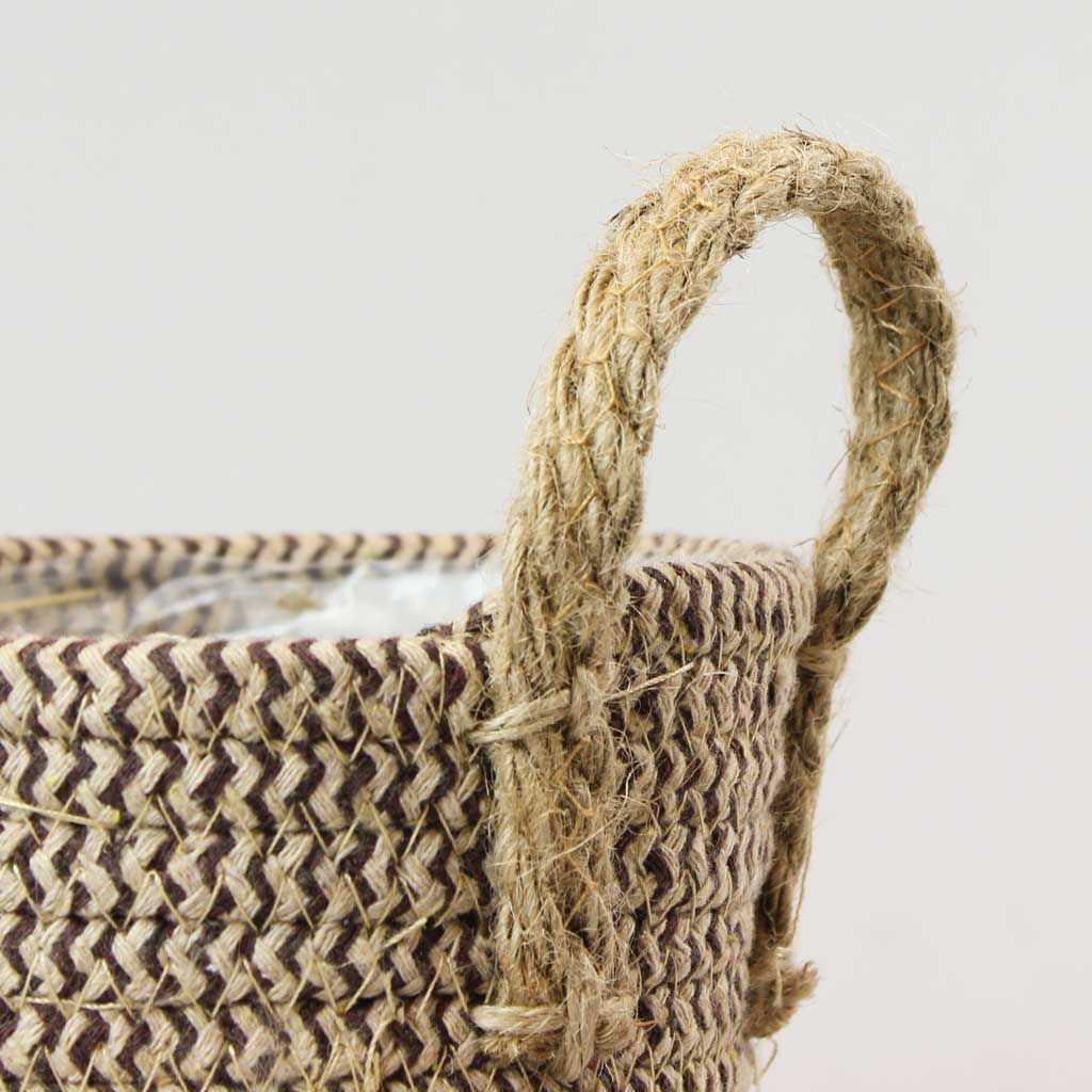 The woven basket base is offset with a contrasting burgundy herringbone pattern, and smooth texture. The Bengal Basket even has two small handles, which will come in handy if you ever decide to transport your plant and add to its rustic appearance.