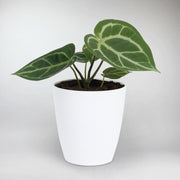 Anthurium crystallinum is a classic velvet‑leaf aroid with large, heart‑shaped leaves and luminous pale veining. New foliage unfurls with a bronze tint before deepening to a rich, plush green. Provide warmth, good humidity, and bright but filtered light. Water when the top few centimetres dry and keep it in an airy, bark‑based mix.
