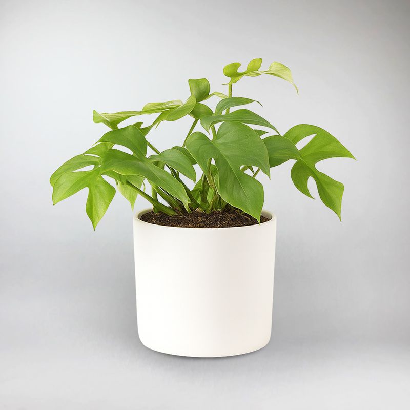 Rhaphidophora tetrasperma ‘Goldrush’ is a rare variegated mini‑monstera with bright golden splashes across its fenestrated leaves. Fast growing and easy to train, it will happily climb a moss pole or trail from a shelf. Keep it in bright, indirect light to maintain the variegation and water when the top compost dries. A lively, modern climber with instant impact.