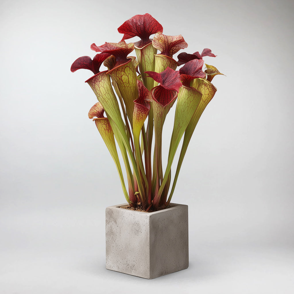 Exotic and eye-catching, the Juthatip Soper Pitcher Plant is a living sculpture! You’ve got pink-veined cones that have ruffled hoods. This hybrid plant is also filled with glistening digestive fluid, also known as its nectar - perfect for luring in bugs like flies and even wasps. Ideal for modern interiors or lush greenhouse displays, it brings a sense of wonder and intrigue to any space.