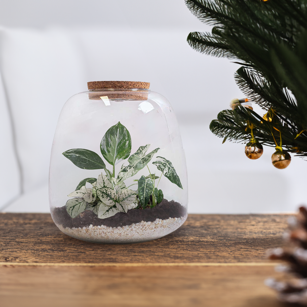 | Plant Variety | Assortment of green & white foliage plants ideal for humid terrariums |