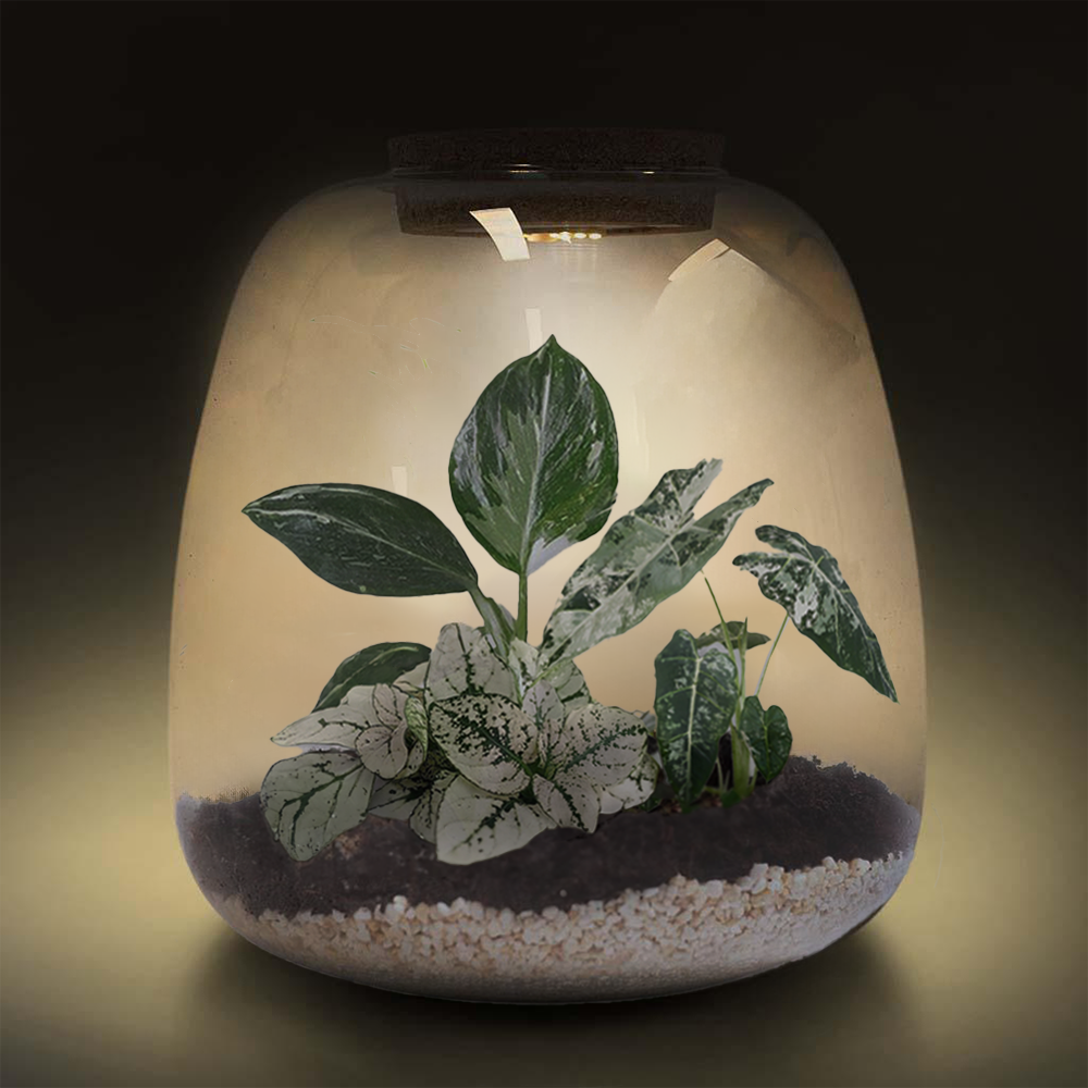 - With Light: Illuminate your white paradise with a small light attached to the cork lid, casting a magical glow over your terrarium and your room at night.